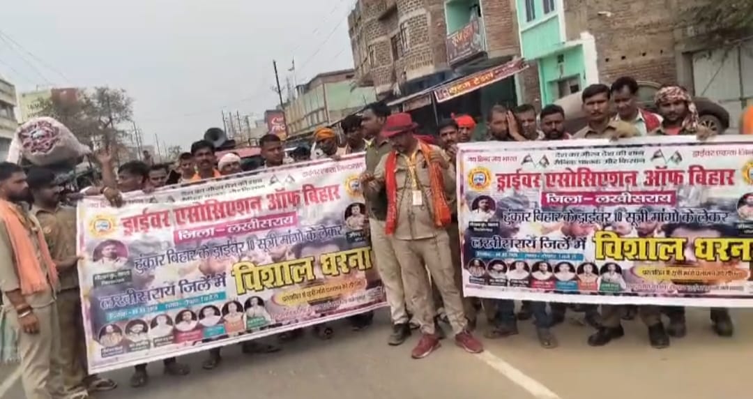 बिहार के लखीसराय में ड्राइबर एसोसिएशन की ओर से दस सूत्री मांग को लेकर किया प्रर्दशन डीएम को सौपा ज्ञापन।