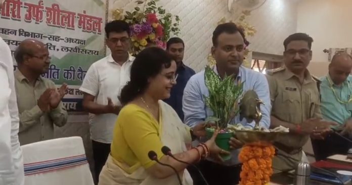 लखीसराय। राज्य के परिवहन मंत्री सह जिला की प्रभारी मंत्री शीला कुमारी एक दिवसीय दौरे पर लखीसराय पहुंची। मंत्री समाहरणालय स्थित मंत्रणा कक्ष में जिला 20 सूत्री की बैठक में शामिल हुई जहां लखीसराय के डीएम मिथिलेश कुमार मिश्र ने बुके देकर मंत्री का स्वागत किए। इस मौके पर एम.एल.सी अजय कुमार सिंह, सूर्यगढ़ा विधायक प्रहलाद यादव समेत कई अधिकारी भी मौजूद रहे । शीला मंडल ने जिले के अधिकारियों के साथ विकास कार्यों की समीक्षा की। बैठक में मंत्री ने विभागवार योजनाओं की समीक्षा की एवं लंबित योजनाओं को शीघ्र पूरा करने का निर्देश दिया। बैठक में डीएम, डीडीसी सहित जिला बीस सूत्री उपाध्यक्ष दीपक कुमार सिंह, रामानंद मंडल सहित सभी विभाग के पदाधिकारी मौजूद रहे।इस मौके पर मंत्री शीला मंडल ने बताया कि बैठक में सभी समस्याओं पर चर्चा की गई और उसके जल्द निदान पर चर्चा की गई। वहीं लखीसराय पहुंचे आर.जे.डी सांसद सुधाकर सिंह ने पीएम नरेंद्र मोदी पर निकम्मे और कायर वाले व्यान पर पलटवार करते हुए वो कुछ भी बोलते रहते हैं, लेकिन आज पूरी दुनिया पीएम नरेंद्र मोदी को मान रहा है।ये उनका मामला है। राहुल गांधी के बिहार दौरे पर भी कहा उनके आने .जाने से कोई फर्क पड़ता।